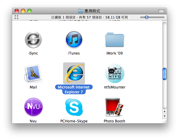 回到應用程式裡就可以看見你剛剛封裝的IE7,請別客氣把它點開來。
