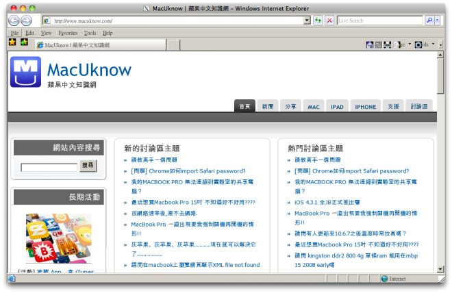 打開IE7之後載網址列輸入Macuknow網址您就看到啦!