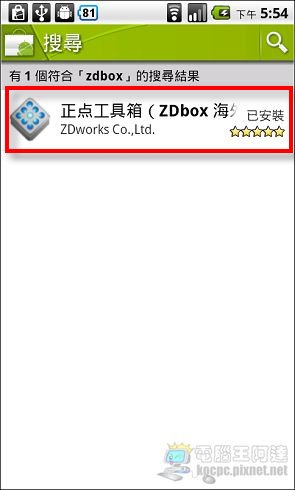 首先至Android Market搜尋「ZDbox」並下載(FREE):